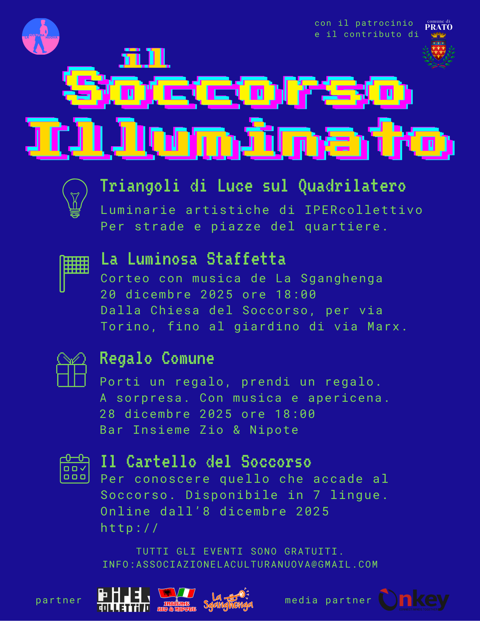 Il Soccorso Illuminato è un progetto culturale e artistico che unisce eventi, camminate narrative, installazioni luminose e momenti di comunità.